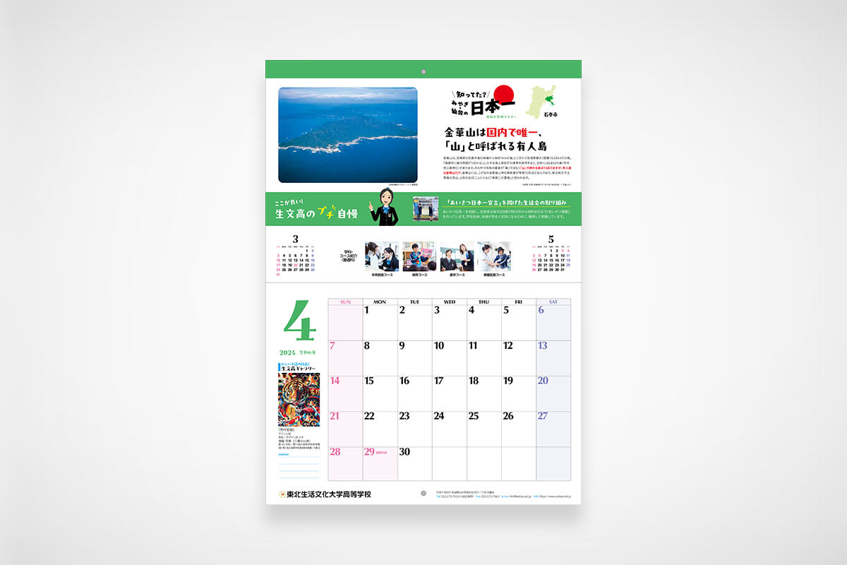 生徒募集のサブツールとして、毎年学校オリジナルカレンダーの企画とデザイン・印刷製本をオーダー頂いています。また、特定の学科コースの特長を伝えるミニリーフレットの制作も2023年に制作いたしました。